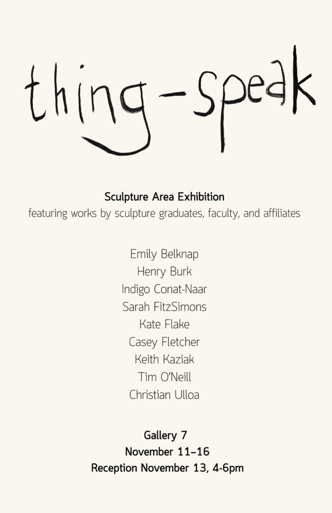 A sculpture area exhibition featuring works by sculpture graduate students, faculty, and affiliates.