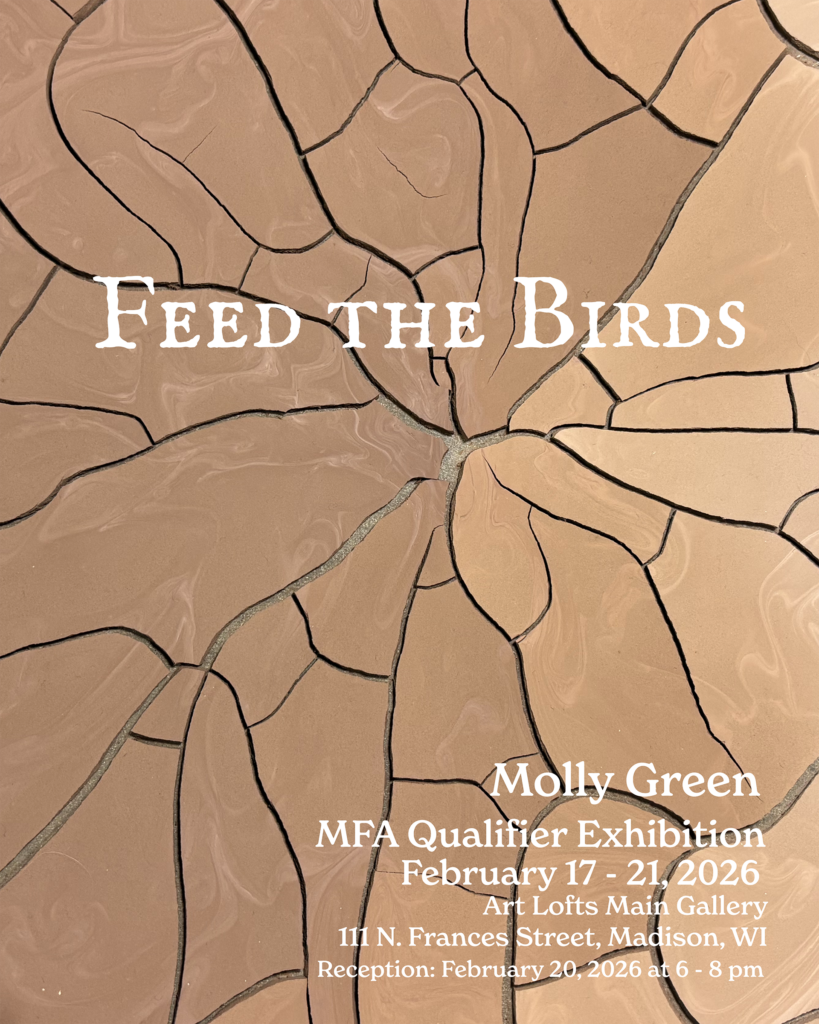 The University of Wisconsin-Madison Art MFA Qualifier Exhibition season continues with Molly Green’s art exhibition. The qualifier solo exhibitions are presented by the graduate students during their fourth semester as the evaluation review of their creative work to qualify for advancement in the MFA program. Come view the work and research by our newest cohort of developing artists!