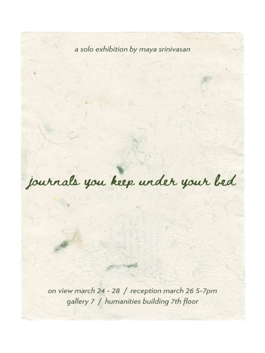 The University of Wisconsin-Madison Art MFA Qualifier Exhibition season continues with Maya Srinivasan’s art exhibition. The qualifier solo exhibitions are presented by the graduate students during their fourth semester as the evaluation review of their creative work to qualify for advancement in the MFA program. Come view the work and research by our newest cohort of developing artists!