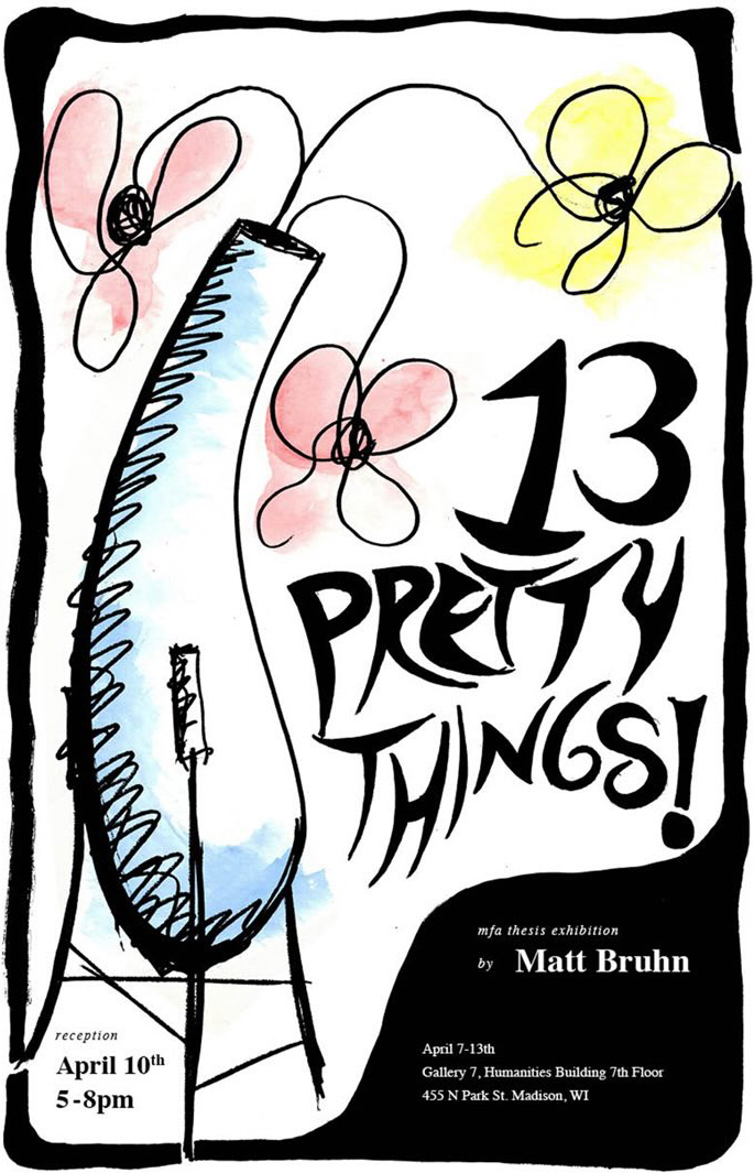 The Master of Fine Arts Thesis Exhibitions season continues with Matt Bruhn’s exhibit 13 Pretty Things! The MFA Thesis Exhibitions mark the culmination of a three-year degree program that emphasizes development of a rigorous studio art practice under the supervision of a faculty guidance committee. Exploring an interdisciplinary approach to art making, as well as coursework in art history and related fields, artists cultivate professional practices that facilitate a sustainable career in the arts. Join us in celebrating our Class of 2026 UW-Madison Graduate professionals!
