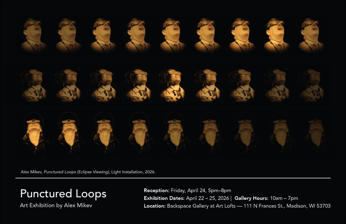 The Master of Fine Arts Thesis Exhibitions season continues with Alex Mikev’s exhibit Punctured Loops. The MFA Thesis Exhibitions mark the culmination of a three-year degree program that emphasizes development of a rigorous studio art practice under the supervision of a faculty guidance committee. Exploring an interdisciplinary approach to art making, as well as coursework in art history and related fields, artists cultivate professional practices that facilitate a sustainable career in the arts. Join us in celebrating our Class of 2026 UW-Madison Graduate professionals!